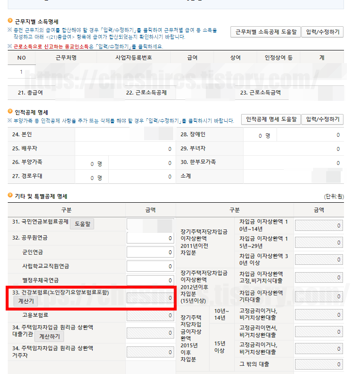 6. 연말정산 항목 입력